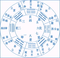 中天易的天文依据,乃本地法之晷景而来,晷景又决定于"昼参日影,夜考极星"之历数。参阅中天八图我们可以了解中天八卦与节令宫辰的关系。